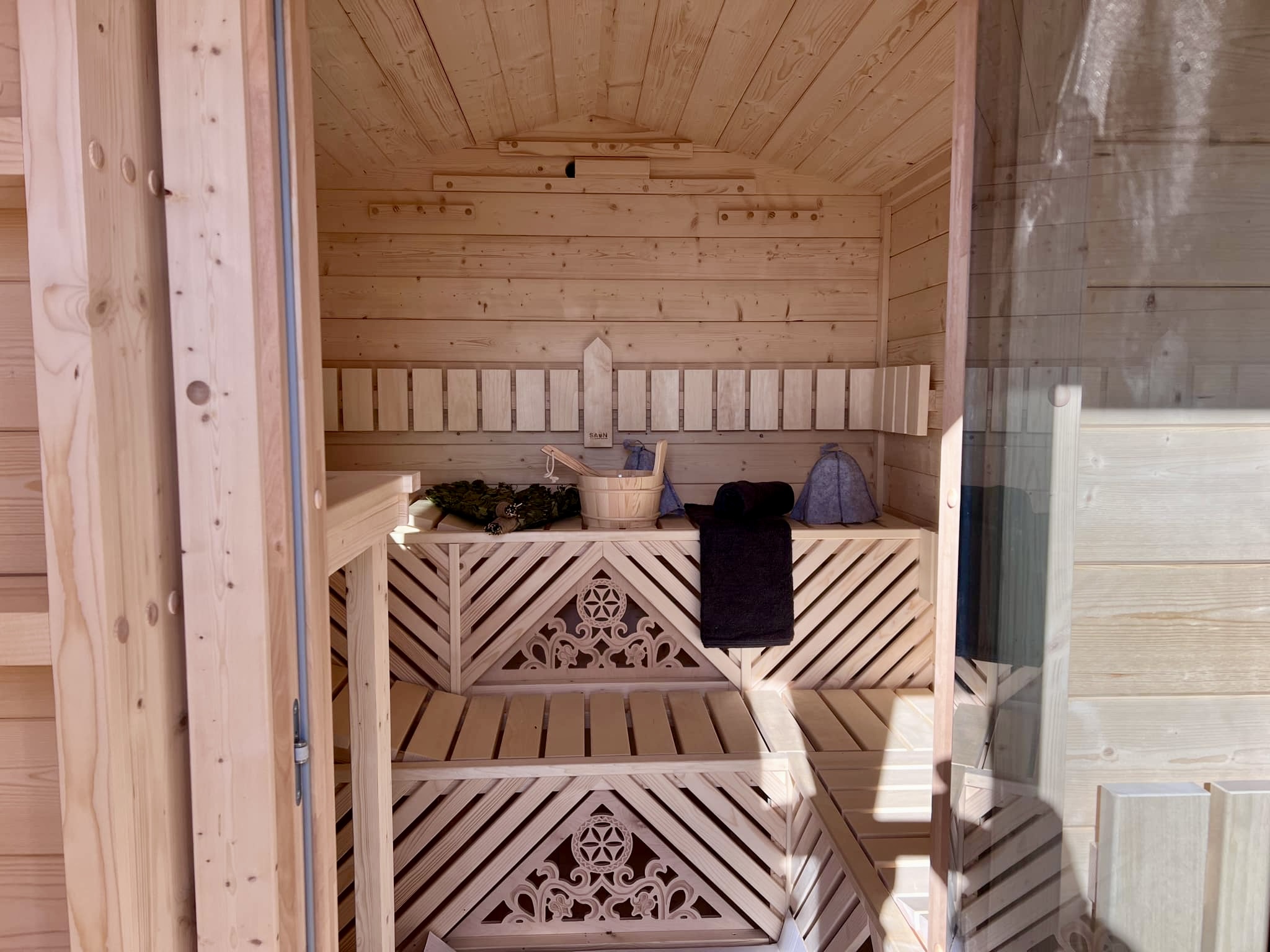 - Zabronione jest wchodzenie do sauny w stroju kąpielowym, obuwiu lub z makijażem. Należy korzystać z czystego ręcznika dostępnego w domkach.